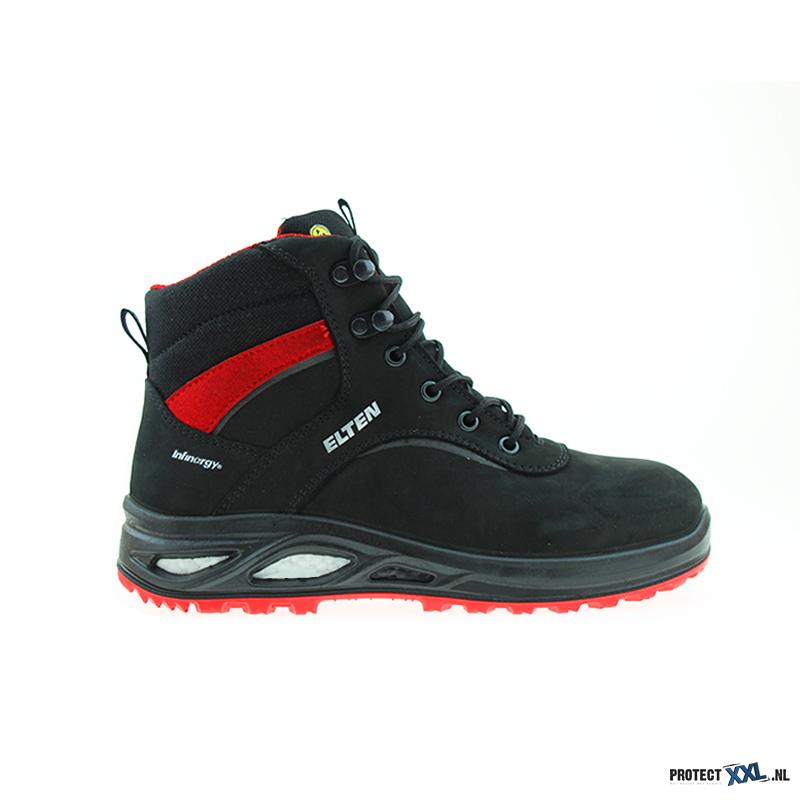 De HENNY XXTL BLACK MID ESD S3 is de sportieve werkschoen van Elten. De HENNY heeft niet alleen een sportieve look maar biedt ook veel draag comfort voor de vrouwelijke voet. Door de WELLMAXX TRAINERS LADY buitenzool van PU/PU scoort de werkschoen dankzij de innovatieve Infinergy®-zoolkern van BASF met unieke dempingseigenschappen. De werkschoen draagt daarom ook veel bij voor de veiligheid, zoals een zeer goede slipweerstand. Verder heeft de werkschoen ook een metaalvrije tussenzool en een stalen neus die de onderkant en de boven van de voet beschermen. Het materiaal dat voor de werkschoenen zijn gebruikt zijn vooral de nubuckleer voor de bovenkant van de werkschoen en een ademende textielvoering dat zorgt voor een aangenaam voetklimaat in de werkschoen. De werkschoen is niet alleen veilig en fijn voor de voet maar ook extreem slijtbestendig en dat zorgt ervoor dat de werkschoen lang mee kan gaan. De werkschoen is verkrijgbaar in maat 35 t/m 42.